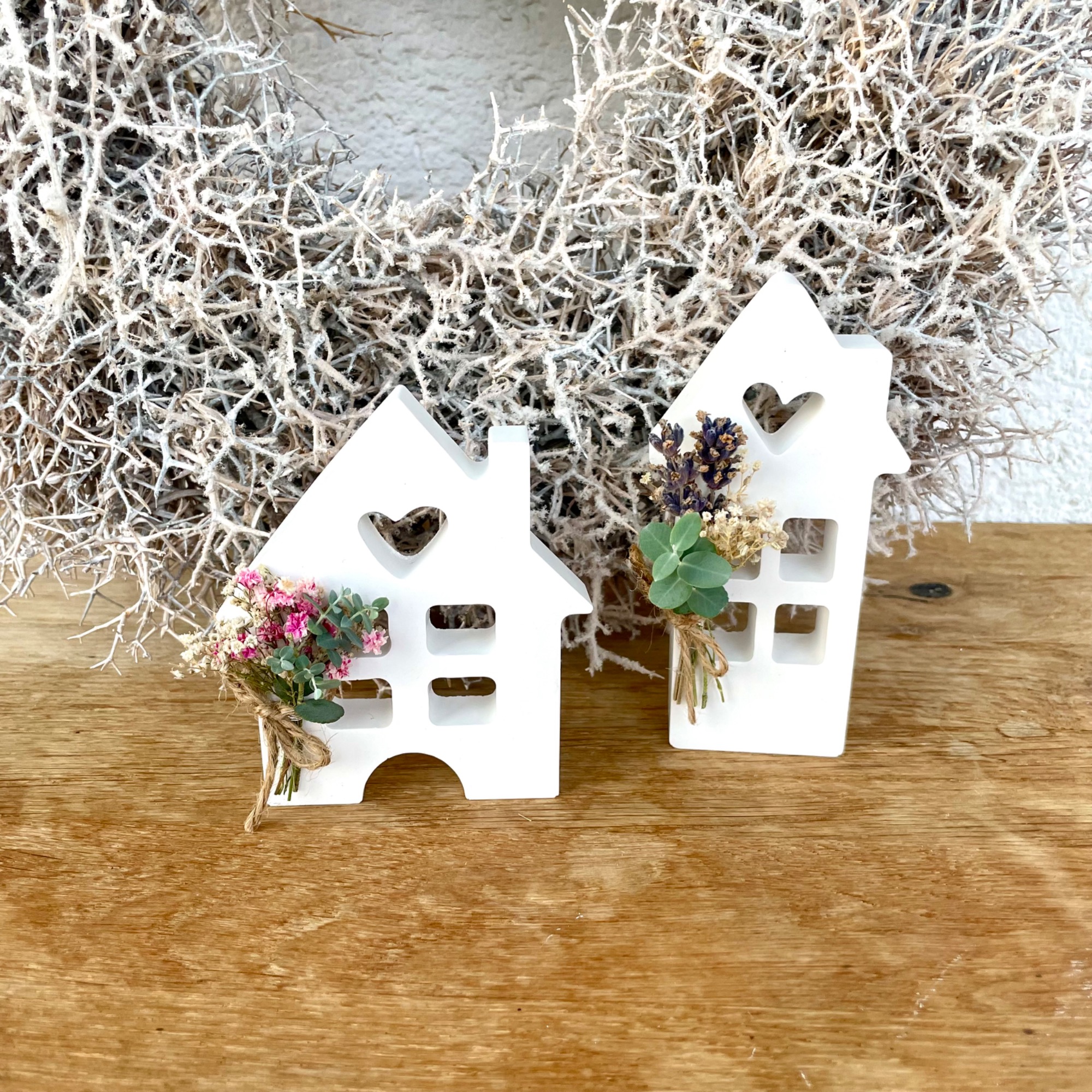 Die Sterne und Häuser sind in drei Größen erhältlich. Stern, Haus und Elch können individuell zusammengestellt werden.